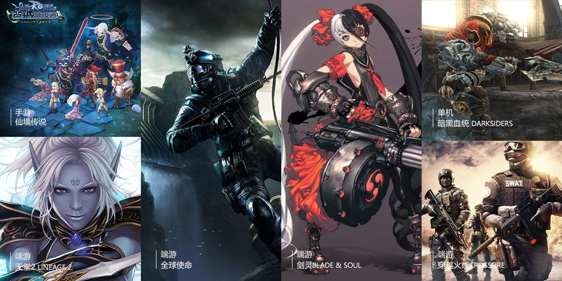 《英雄三國(guó)》、《藏地傳奇》、《新飛飛(FF2)》、《天堂之冠》、《倩女幽魂》、《大唐無(wú)雙》